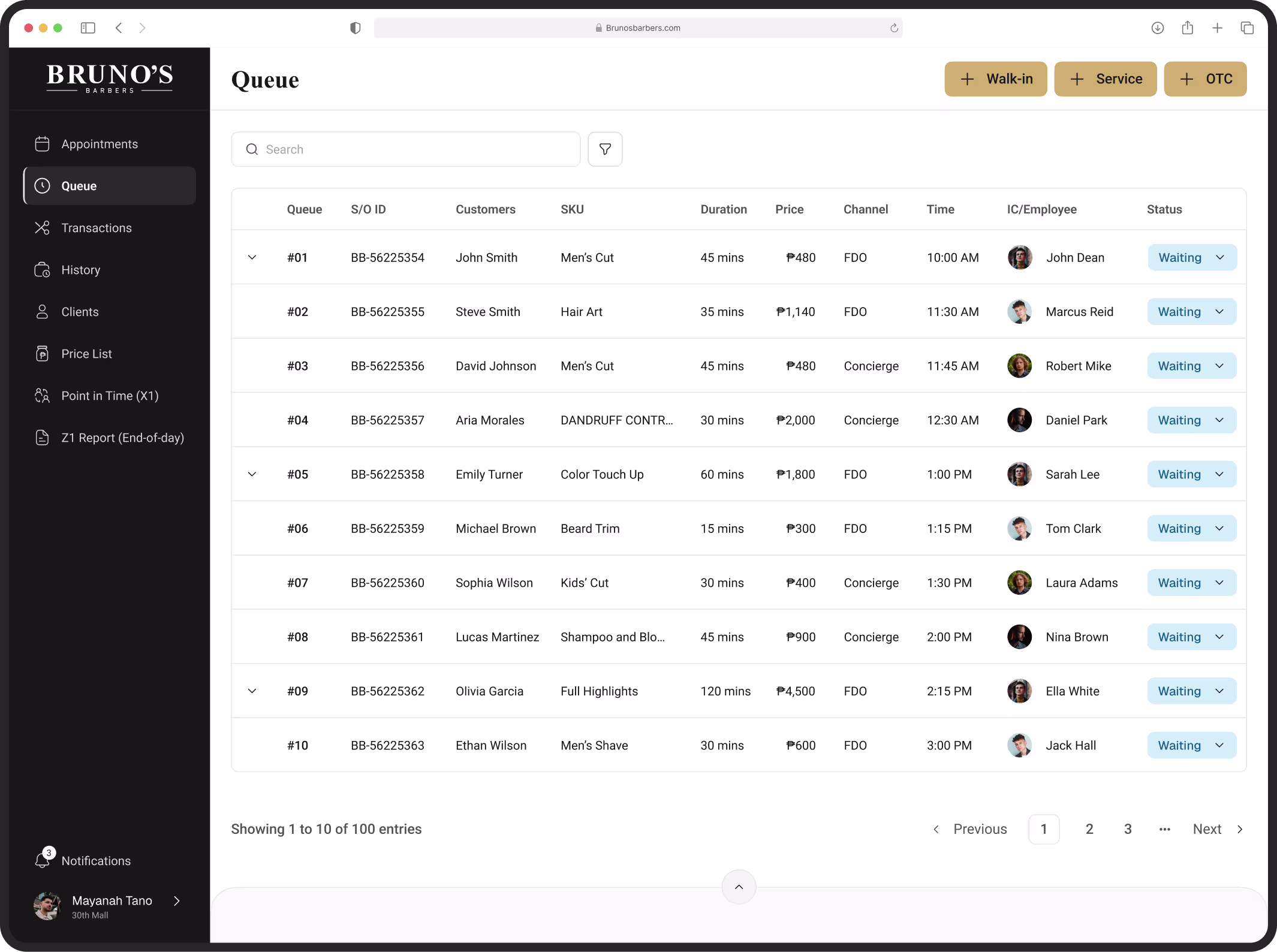 Bruno’s Barbers is a complete digital ecosystem built from scratch to support both customers and in-store operations.