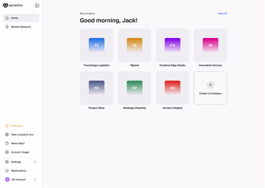 Our goal was to redesign the UI/UX to reduce complexity, improve clarity, and make the product easier to use for first-time users as well as growing teams. We focused on simplifying onboarding, improving navigation across core tools, and creating a more intuitive experience across planning, forecasting, and research workflows.
