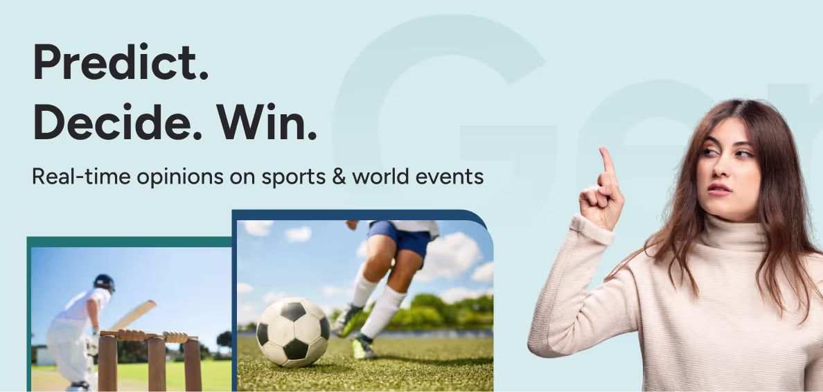 Prediction cards are designed in a feed-style layout with clear Yes and No actions, visible timers, and trade counts to maintain transparency and engagement.
